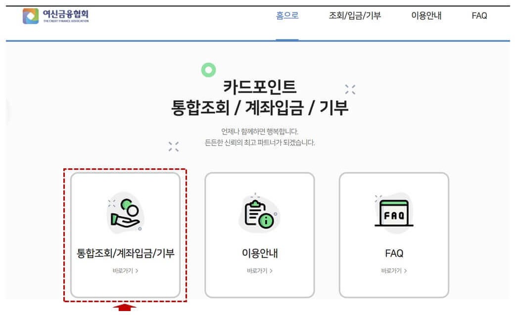 접속하여 '카드 포인트 통합조회&계좌입금'을 클릭합니다.