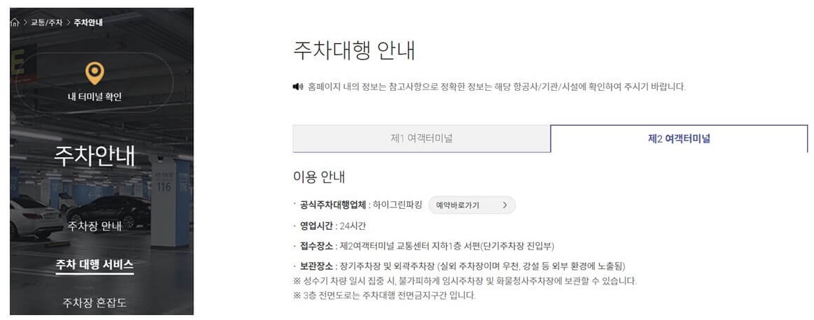 인천공항 제2여객터미널 주차대행 서비스(하이그린파킹) 이용 방법