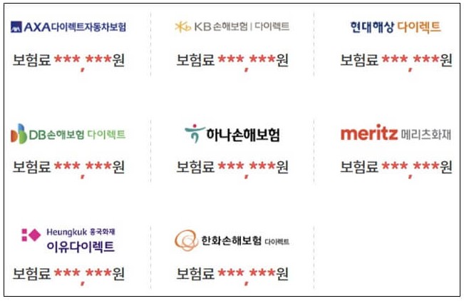 6. 아래처럼 각 보험사별 다이렉트 예상납입보험료를 한눈에 확인하실 수 있습니다.