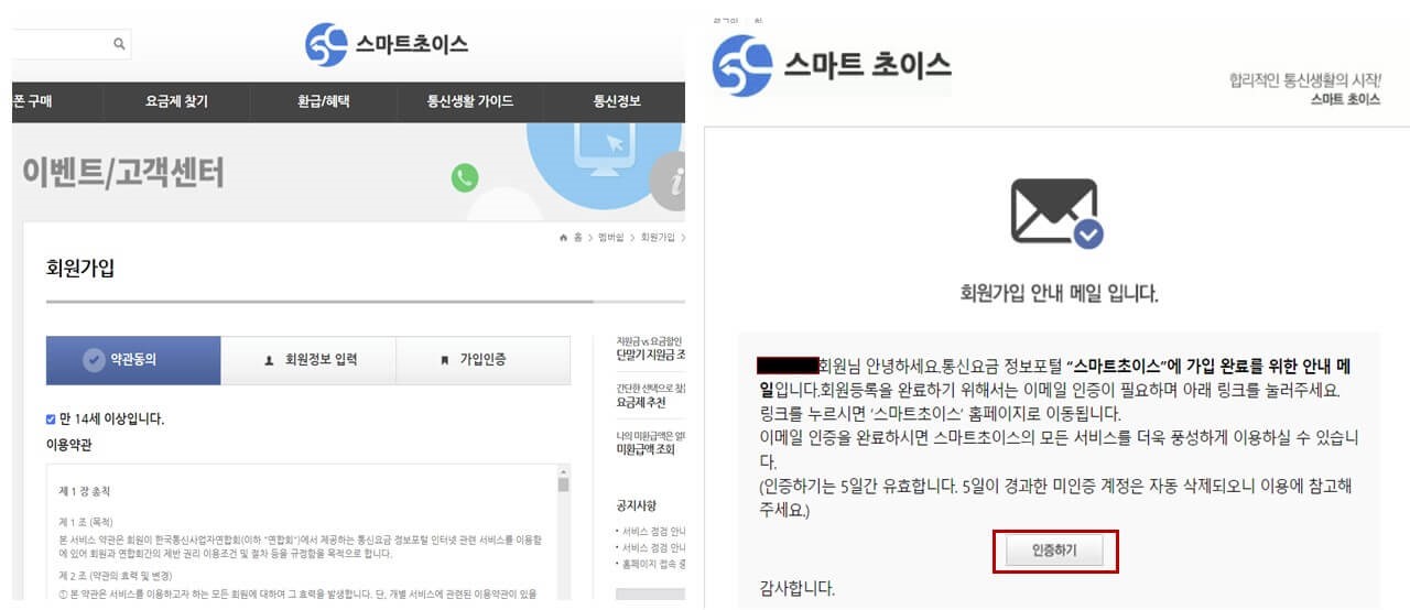 5. 환급받을 금액이 있을 시에는 아래 로그인을 클릭하면 '스마트초이스'로 접속하여 회원가입 후 등록한 메일로 '회원가입 안내 메일입니다'를 수신받게 됩니다.